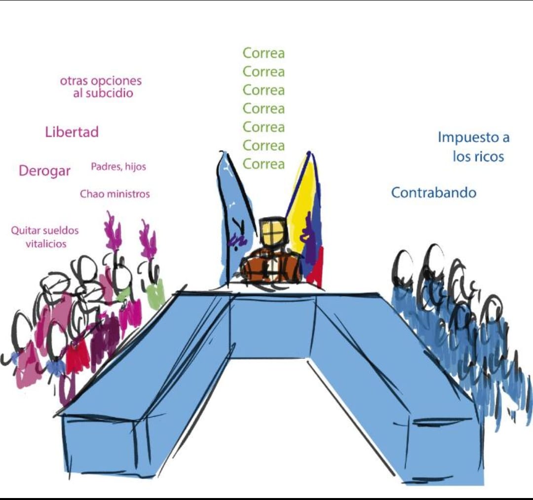 Pero, la participación en las manifestaciones parece haber sido mucho más considerable. Las manifestaciones en Guayaquil antes de la llegada de los indígenas, la cantidad de donaciones recibidas en las zonas de paz para atender a los manifestantes indígenas, que inclusive llevó a la Pontificia Universidad Católica del Ecuador a pedir que se dirijan las donaciones a otros centros, la participación espontánea de varios barrios de la ciudad durante el día 10 de octubre, la toma de gobernaciones en varias provincias del país, los primeros minutos del cacerolazo (al que me referiré después), los memes que circularon durante y después del Diálogo por la Paz, además de la participación en redes sociales, dan cuenta de que la participación en las manifestaciones debió ser muchísimo más numerosa y diversa, y que seguramente hubo muchos que apoyaban sin salir de sus casas, aunque no me atrevería a dar números porque no cuento con una metodología rigurosa de estimación.