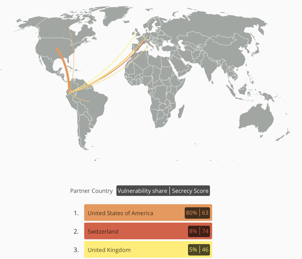 Pueden consultar los distintos datos aquí: https://iff.taxjustice.net/#/profile/ECU