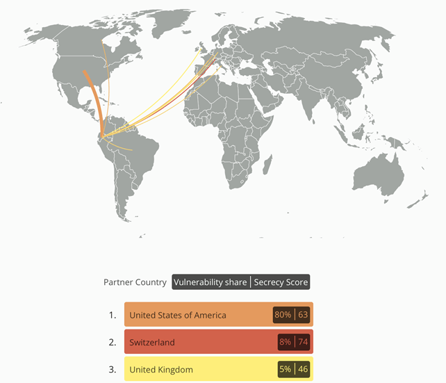 ¿Quiero decir que hay que proscribir la inversión extranjera? No, de ninguna manera, y de hecho hay capitales extranjeros que pueden ser muy beneficiosos para el país. Pero no se pierda de vista el objetivo y el instrumento. La atracción de capitales no es un objetivo, es un instrumento. El bienestar es un objetivo. Si quieren ponerse más legalistas, los objetivos se encuentran en la Constitución. Si son como yo, un poco más tomistas, el objetivo se encuentra en el bien común, que debería ser objeto de otro conversatorio. Entonces, la regulación y el control podrían dirigirse hacia este bien común: generar socios y no especuladores, generar relaciones de largo plazo y no la tensión de una relación de rendimientos volátiles. Por ejemplo, podría ponerse un Impuesto a la Salida de Divisas ligeramente mayor para rendimientos de inversiones en las bolsas de valores, o podrían generarse prohibiciones para participación de empresas domiciliadas en paraísos fiscales. A propósito, ¿sabían ustedes que una gran cantidad de paraísos fiscales actuales hace cuatro siglos eran refugios de piratas y corsarios? Evidentemente, de dominio del Imperio Británico, contra la Monarquía Española. Pero nuestra principal vulnerabilidad con respecto a flujos financieros ilícitos no proviene de islas caribeñas o del Pacífico Sur, sino, de acuerdo con la Tax Justice Network, de Estados Unidos.