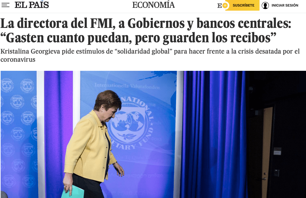 Volviendo de nuevo a los intereses del FMI, hay una cosa grave que se debe denunciar: mientras que sus altas autoridades instan a los gobiernos y a los bancos centrales a destinar recursos a salir de la crisis económica y sanitaria, como ya lo han hecho la mayor parte de países y bancos centrales del mundo (independiente de la tendencia ideológica de sus gobiernos, de ser países con moneda propia, común, moneda extranjera, o de ser países con déficits o superávits fiscales), el acuerdo con el FMI condiciona al Ecuador a todo lo contrario.