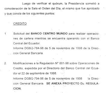 De acuerdo al Acta de Sesión del Directorio del Banco Central del Ecuador celebrada el 5 de noviembre de 1998, Rosa Matilde Guerrero tuvo el cargo de Directora General Bancaria, Encargada. Dentro de estas funciones recomendó operaciones a favor de bancos privados (en la mencionada acta se trata de la operación de cartera a favor del Banco Centro Mundo) y recomendó modificar regulaciones sobre operaciones de crédito del Banco Central del Ecuador (a través del informe DGBQ-794-98 de 5 de noviembre de 1998).