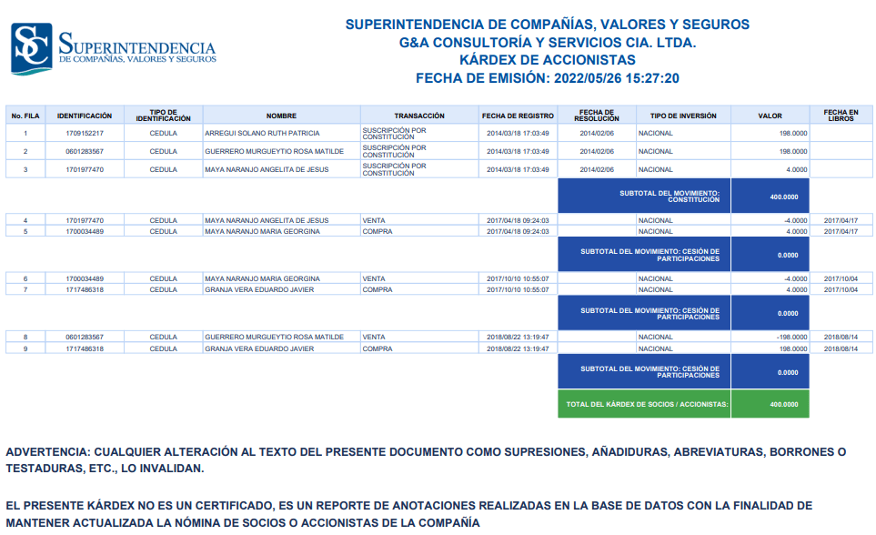 Guerrero y Arregui fueron accionistas mayoritarias (49,5% de acciones cada una) de G&A CONSULTORÍA Y SERVICIOS CIA. LTDA. (¿podrían las siglas corresponder a Guerrero y Arregui?), conforme consta en el expediente 176392 de la Superintendencia de Compañías. Una compañía formada en el año 2014. A partir del año 2018, las participaciones de Rosa Matilde Guerrero pasan al ciudadano que contaba con el 1% restante hasta el año 2017.