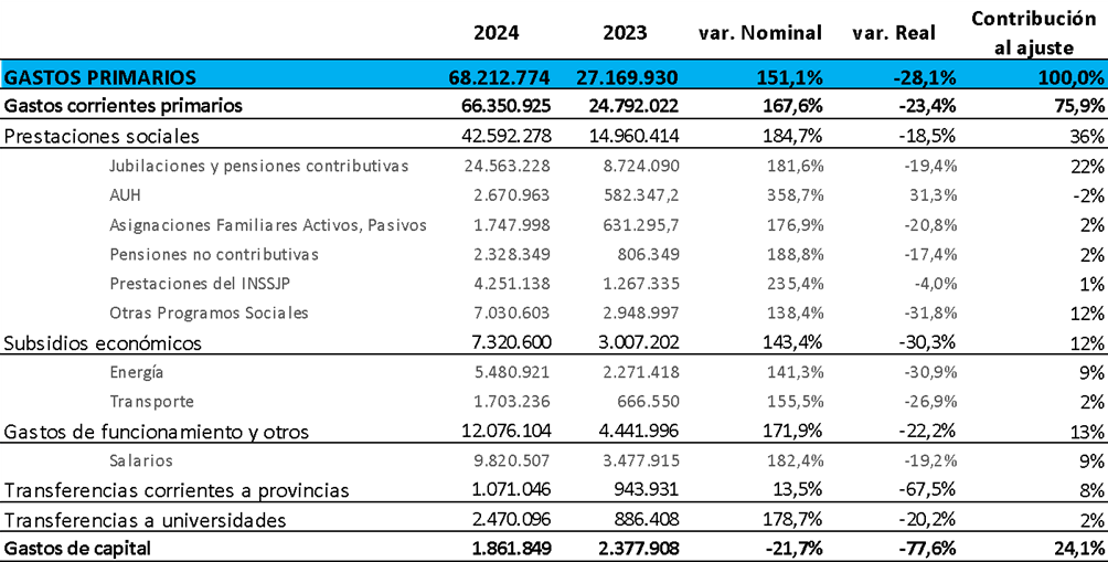 Sin embargo, por su magnitud, el peso del ajuste recae principalmente sobre las Prestaciones Sociales (36%), en donde Jubilados y Pensionados se llevan la peor parte (22%).
