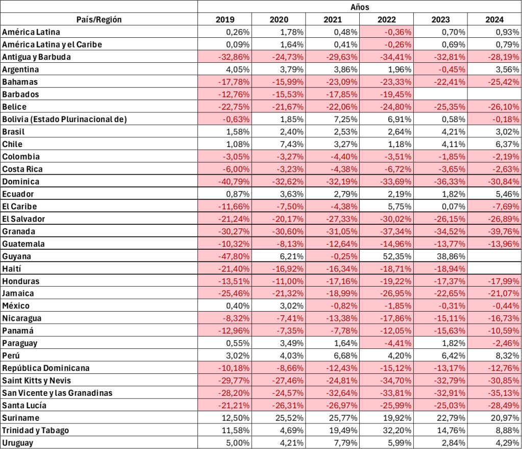 Nota: La brecha externa se calcula obteniendo primero la diferencia entre las exportaciones e importaciones a precios corrientes, y luego dividiendo ese valor por el PIB total correspondiente.