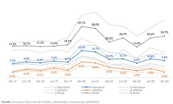 [3] Es necesario indicar que los índices de pobreza en las zonas rurales son agudos, más aún en lo referente a la extrema pobreza, el indicador para las zonas rurales es 7,5 veces mayor que en las zonas urbanas, según datos de la encuesta oficial para hogares del Instituto Nacional de Estadísticas y Censos para diciembre del 2023.