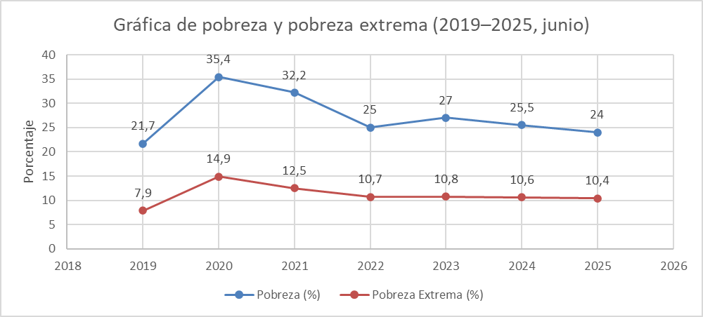 Como se observa en la Tabla 1, los niveles de pobreza y pobreza extrema han oscilado significativamente desde 2019, sin que los avances recientes superen los márgenes de error estadístico ni la media regional.