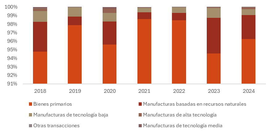 Figura 2. Participación de las exportaciones a Corea del Sur por intensidad tecnológica