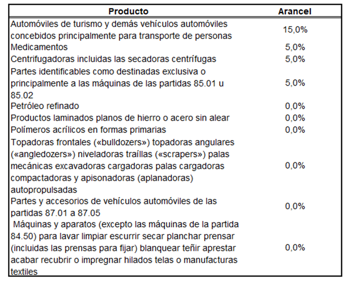 Figura 6. Arancel aplicado por Ecuador a los principales productos importados desde Corea del Sur