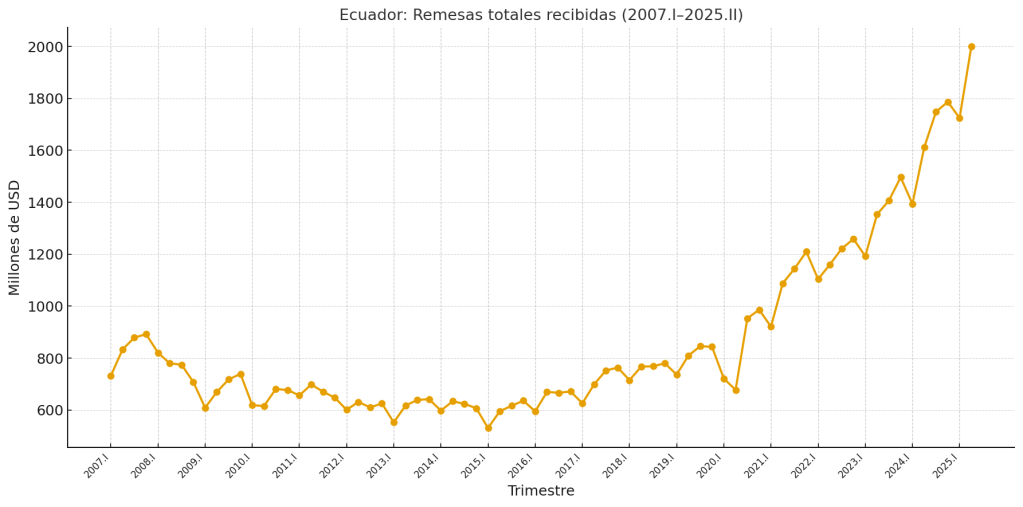 Banco Central del Ecuador. (2025). Boletín Analítico de Remesas — Base histórica RemesasPub.xlsx. Quito: BCE.