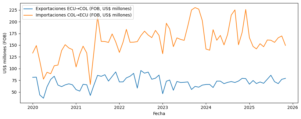 Tabla 1. Comercio Ecuador–Colombia (FOB, US$ millones)