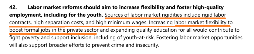 El Acuerdo del Ministerio del Trabajo (MDT-2026-059 ) sobre la autorización de los horarios especiales de trabajo que ayer entró en vigencia forma parte de los objetivos y políticas del Programa de Servicio Ampliado del SAF 2024 y ampliado 2025 con el Fondo Monetario Internacional (FMI) sobre la flexibilidad del mercado laboral. Las autoridades económicas del “Nuevo Ecuador” y el Fondo ya acordaron que los contratos que reivindican derechos constitucionales son rígidos y costosos. Si flexibilizan con regulaciones como la que acaban de emitir, dicen, se incrementará el empleo formal, especialmente para los jóvenes y mujeres. Eso dice el item 42 del SAF 2024 sobre “fortalecer la competitividad y estimular el potencial de crecimiento”: