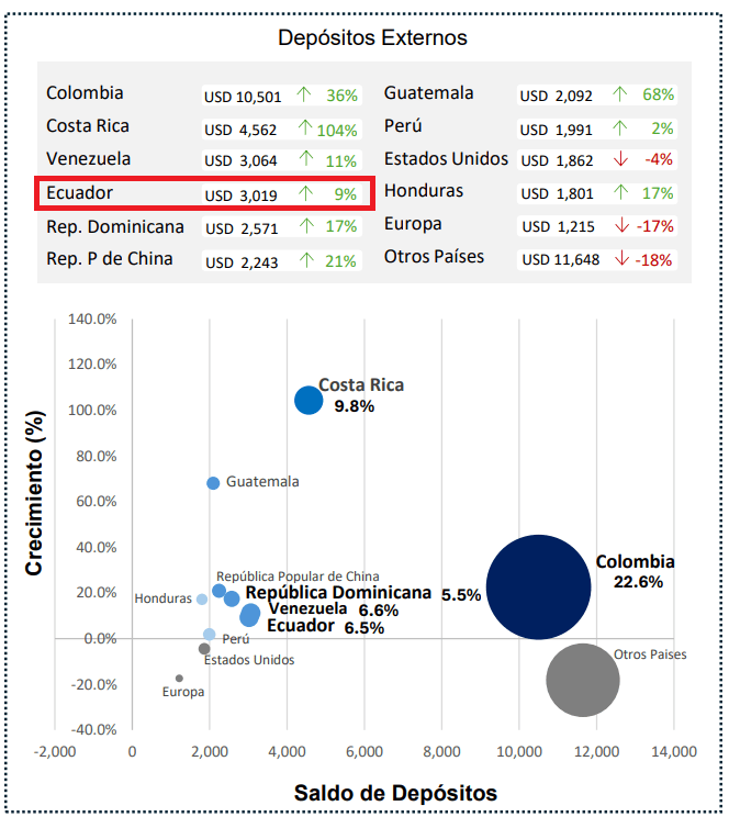 A las autoridades económicas ecuatorianas que dicen defender la dolarización les debería preocupar que si en septiembre de 2017, en base a la información de la Superintendencia de Bancos de Panamá, se identificaron más de USD 2.000 millones de activos externos de personas naturales y jurídicas depositados en bancos panameños (un artículo de este Observatorio analizó con más detalle la citada información), a diciembre 2025, estos depósitos generados en territorio ecuatoriano, rebasaron los USD 3.000 millones. Si bien cifra oficial pero aún subestimada.