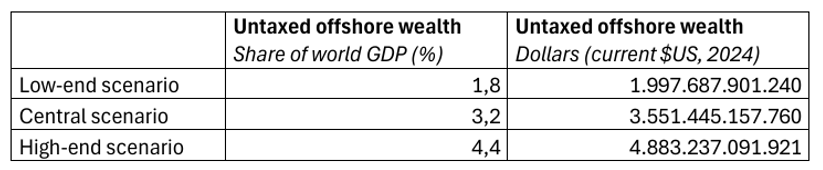 Gráfico y tabla tomado de la nota metodológica de estimación de la riqueza offshore, Oxfam.